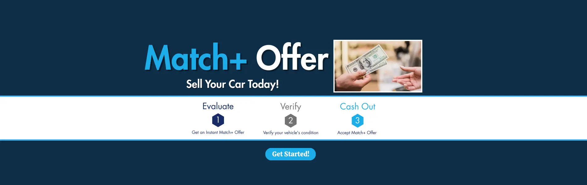 Simply click the link below and complete the Match+ Offer form to receive an instant cash offer for your vehicle. Have another Offer? Take a photo of any valid offer and include it in the Match+ Offer form. Match+ will beat any valid offer by adding an additional $500.